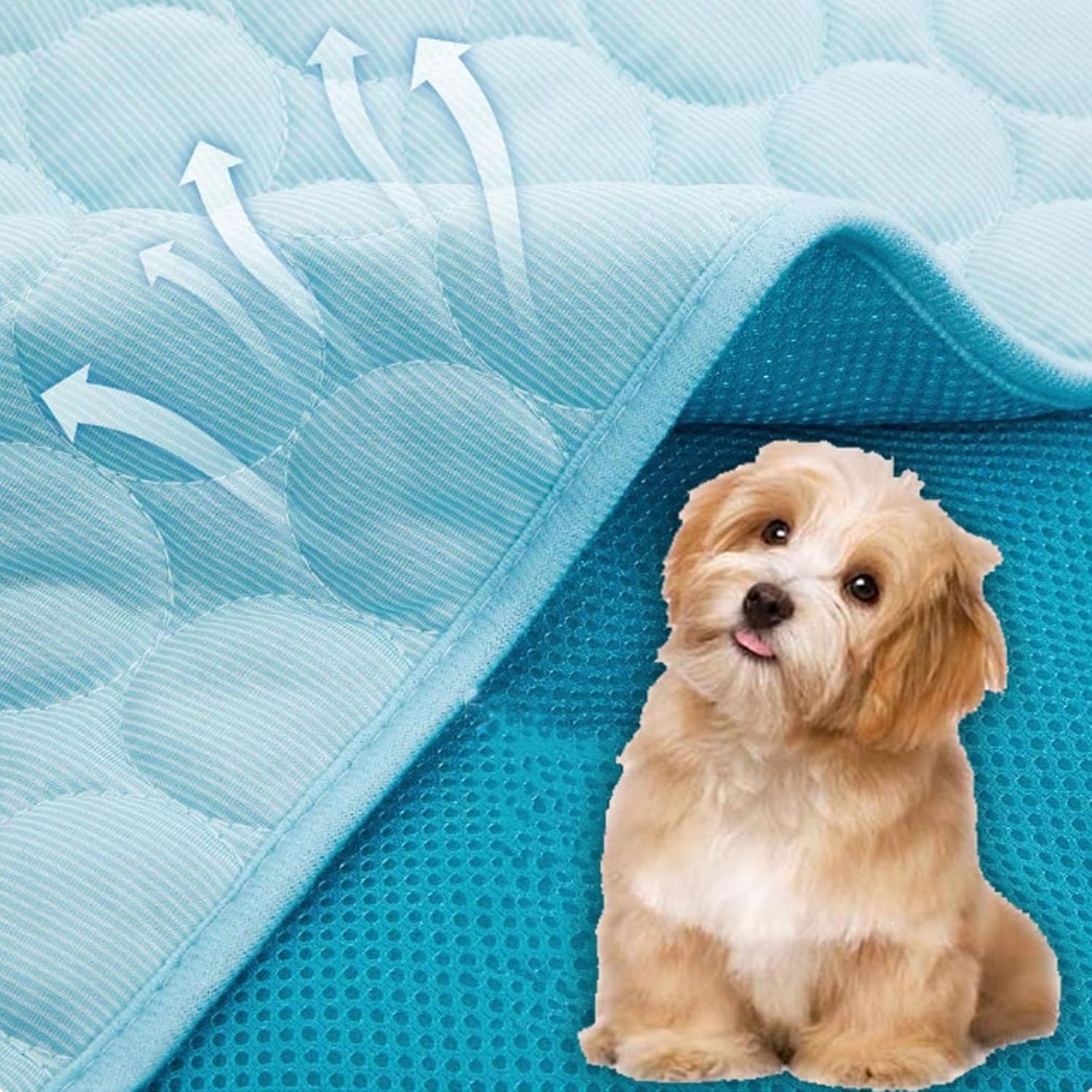 The front of this pet pad is made of ice silk cooling material, providing a cool feeling for pets. The breathable mesh bottom can also easily dissipate heat, ensuring better cooling effect.